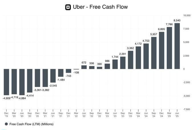 However, unlike all these AI companies, Uber had a network effect. It won the ride-sharing app race and has turned into a cash machine.