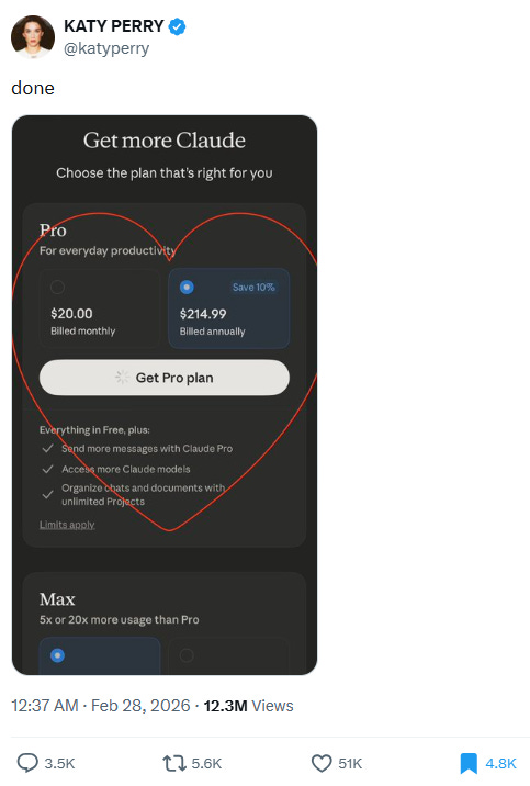Justin Trudeau’s girlfriend even posted a screenshot of her Claude Pro subscription with a heart superimposed over it.