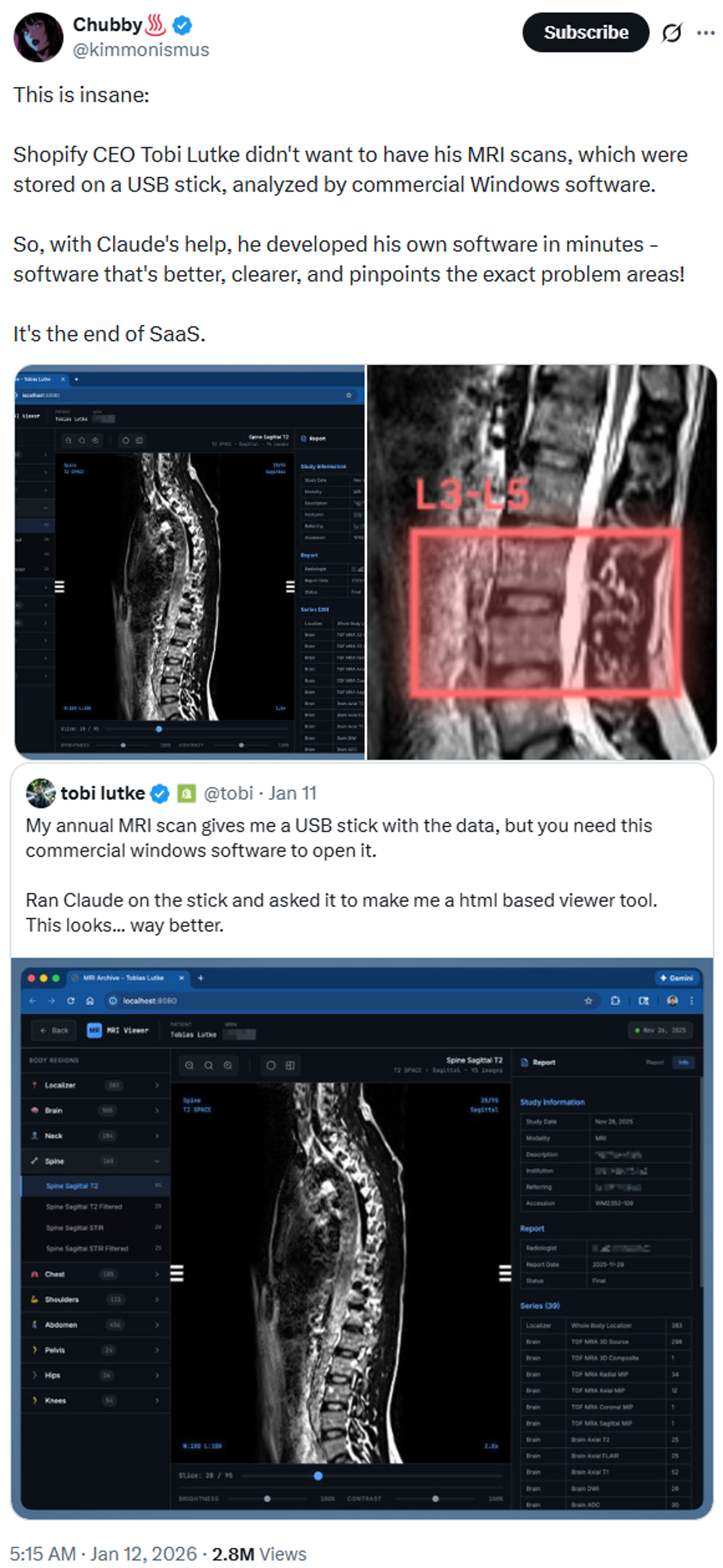 Why would a company pay millions in annual licenses for generic software, then spend millions more customizing it, when a handful of developers armed with Claude can build a bespoke application that fits their exact needs for a fraction of the cost?